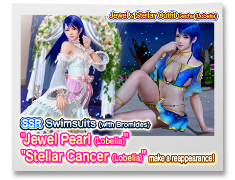 SSR Swimsuit “Jewel Pearl (Lobelia)” and SSR Swimsuit “Stellar Cancer (Lobelia)” are not included in the “Weekly SSR Ticket Gacha,” “Weekly Gacha,” “SSR Swimsuit Ticket Gacha,” “SR Swimsuit Ticket Gacha,” or “Venus Gacha.” However, they may be added in the future.