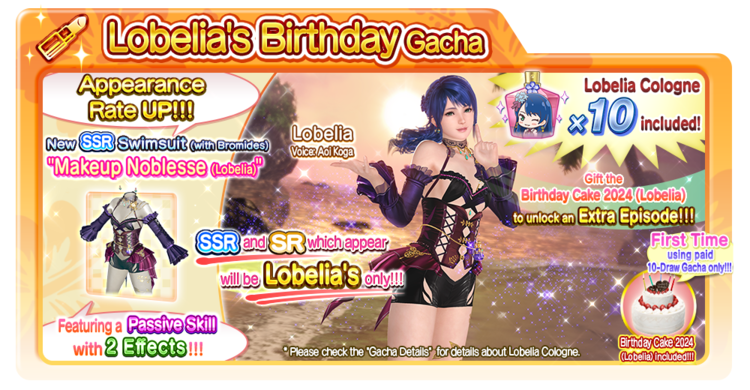 SSR and SR swimsuits appearing in the “Lobelia's Birthday Gacha” are Lobelia-exclusive swimsuits.