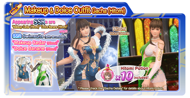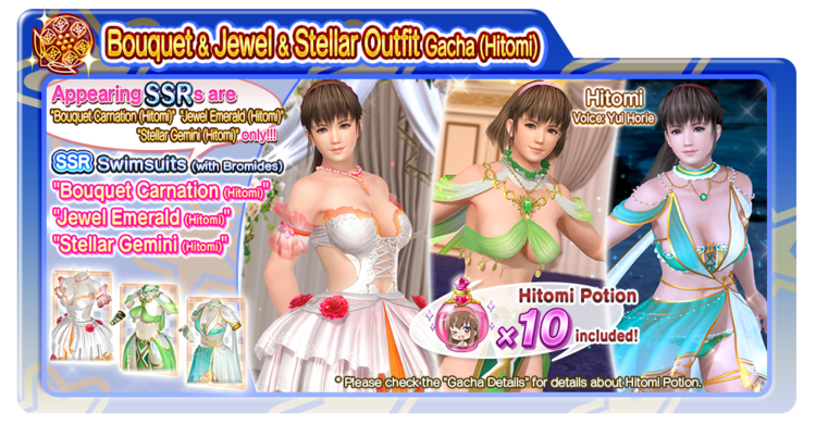 | ■ | Get “Hitomi Potions” as a bonus! The previous “Birthday Outfits” Gacha are here! |