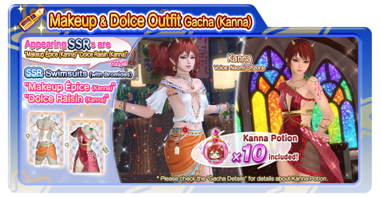 “Makeup & Dolce Outfit Gacha (Kanna),” “Bouquet & Jewel & Stellar Outfit Gacha (Kanna)” are also here! Get “Kanna Potions” as a bonus when drawing from the Gacha!