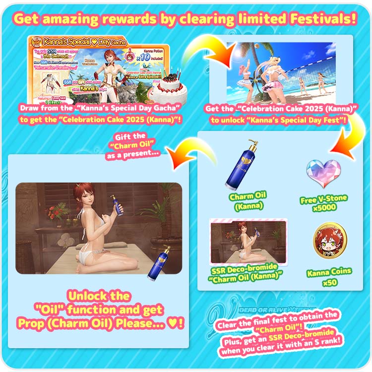 Obtain the “Celebration Cake 2025 (Kanna)” and challenge “Kanna Special Day Festival”! Also, if you give it as a present to Kanna, you can unlock an “Extra Episode(s)” and obtain the Furniture “Celebration Cake (Kanna)” and a Photoshoot spot “Kanna's Cake”!