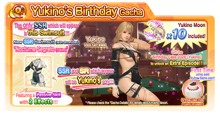 The only SSR swimsuit to appear in “Yukino's Birthday Gacha” is “Nocturne Segreto (Yukino)”!