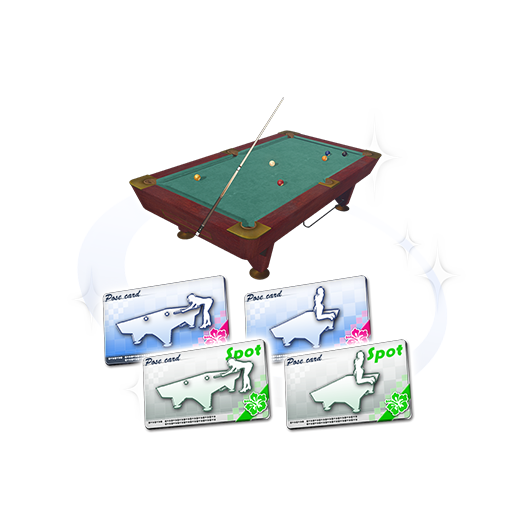 "Large Prop (Billiard Table) Playing/Kneeling (Yukino)" includes "SPOT-exclusive Large Prop(s)" usable at photo shoot spot "Poolside Bar".