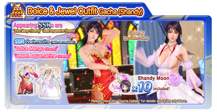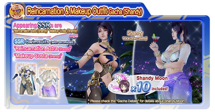“Reincarnation & Makeup Outfit Gacha (Shandy),” “Dolce & Jewel Outfit Gacha (Shandy)” are also here! Get “Shandy Moons” as a bonus when drawing from the Gacha!