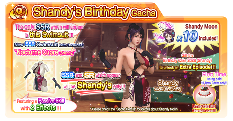 “Shandy's Birthday Gacha” can only be done with 10-Draws, and can only be drawn with Paid V Stones.