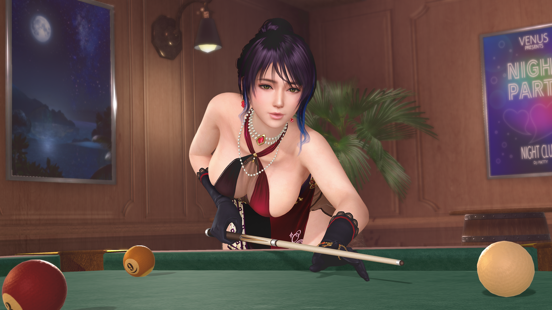 When the "Mystery Cue Ball" smacks areas like her chest, butt, or thighs, her skin shape may be "modified" in some locations, or the impact of the ball popping may cause "shaking".