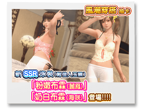 ※ | SSR泳裝「粉嫩布霖(麗鳳)」及SSR泳裝「奶白布霖(海咲)」為限定期間的泳裝。 「SSR泳裝必中券抽卡」及「維納斯抽卡」並不包含以上的泳裝,但之後仍有新增的可能性。 |