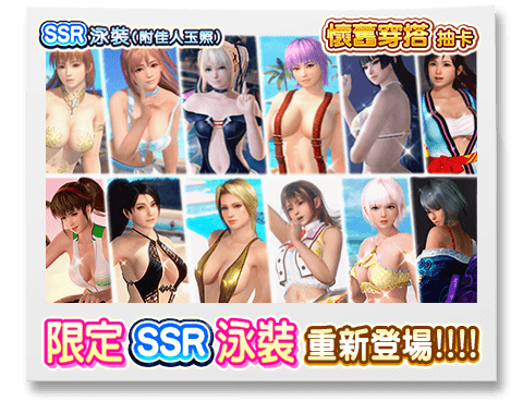 ※ | 精選泳裝是限定期間的泳裝。 「SSR泳裝必中券抽卡」及「維納斯抽卡」並不包含以上的泳裝。但之後仍有新增的可能性。 |