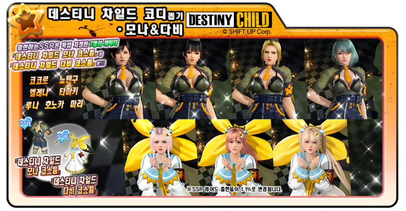 「데스티니 차일드 코디 뽑기・리자&이브」 개최 안내