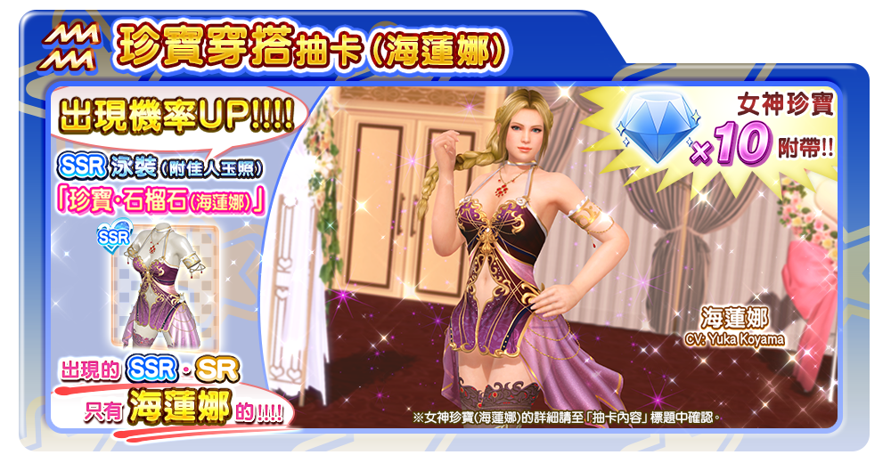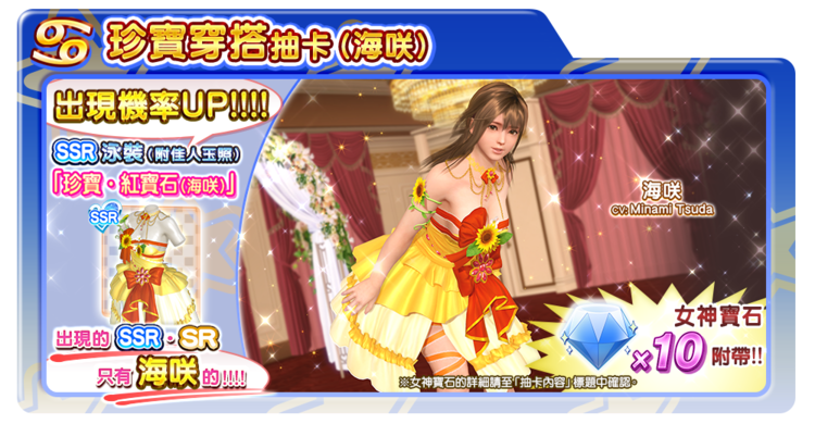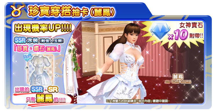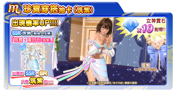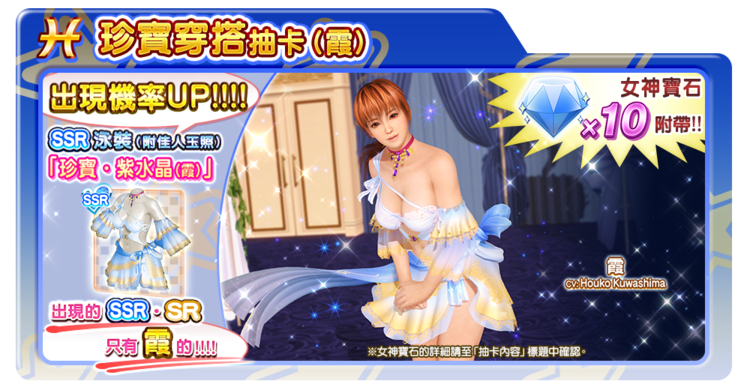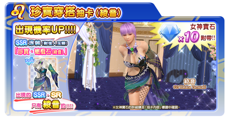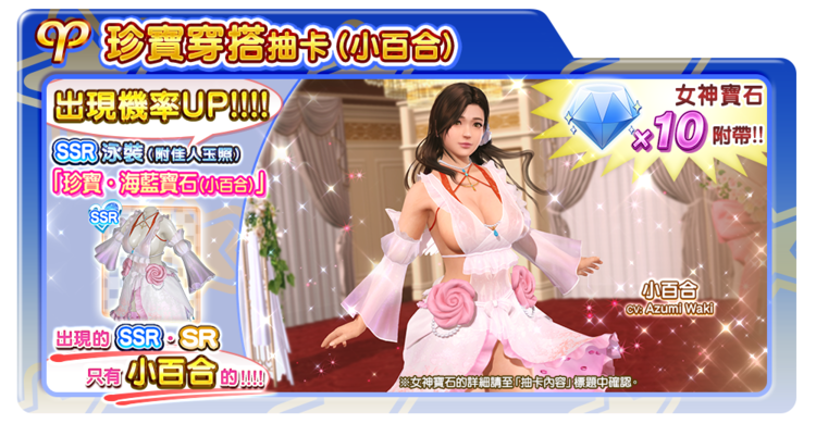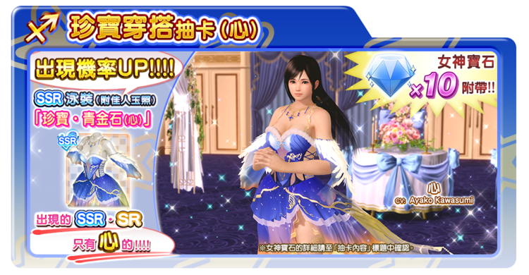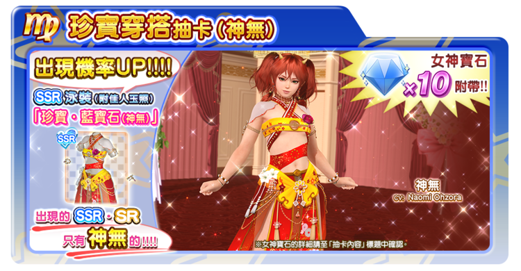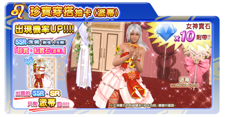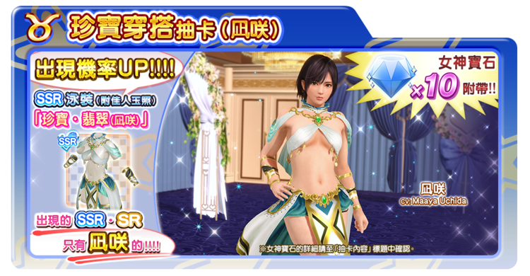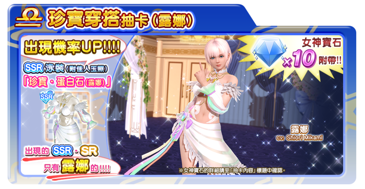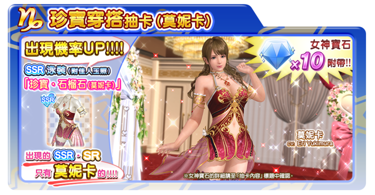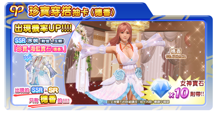 蒐集200個「女神寶石」, 便可換取1套SSR泳裝! | |||||