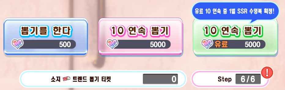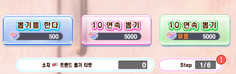 | ※ | 1회 뽑기 및 트렌드 뽑기 티켓을 사용했을 경우 Step 수가 변동하지 않습니다. |