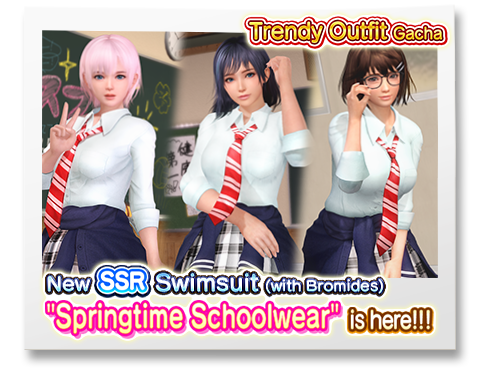 The number of “Springtime Schoolwear (Luna・Reika・Tsukushi)” that can be exchanged for at the “Trendy Gacha Coin (Red) Bonus Exchange” is limited to one each.