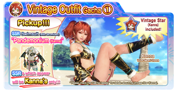 In the “Vintage Outfit Gacha ①,” SSR Swimsuit “Pandemonium (Kanna)” will appear more often.