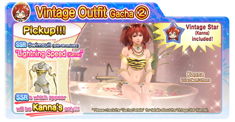 In the “Vintage Outfit Gacha ②,” SSR Swimsuit “Lightning Speed (Kanna)” will appear more often.