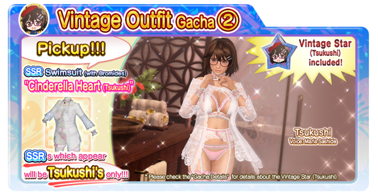 In the “Vintage Outfit Gacha ②,” SSR Swimsuit “Cinderella Heart (Tsukushi)” will appear more often.