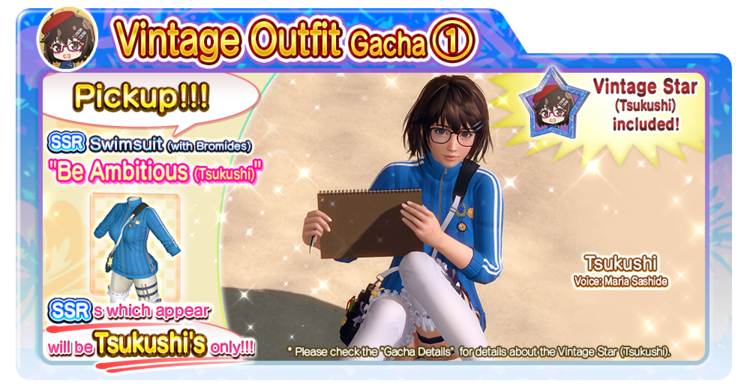In the “Vintage Outfit Gacha ①,” SSR Swimsuit “Be Ambitious (Tsukushi)” will appear more often.