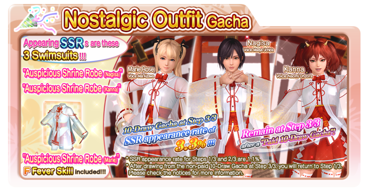 The “Nostalgic Outfit Gacha” will start from “Step 1/3.” Performing 10-Draw Gachas will increase the step count to a maximum of “Step 3/3.”