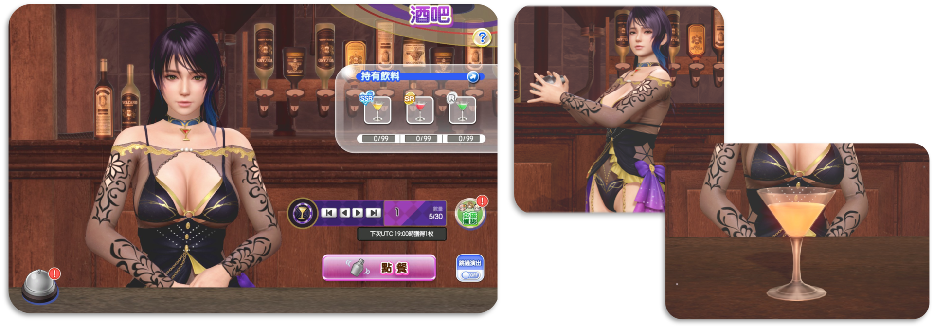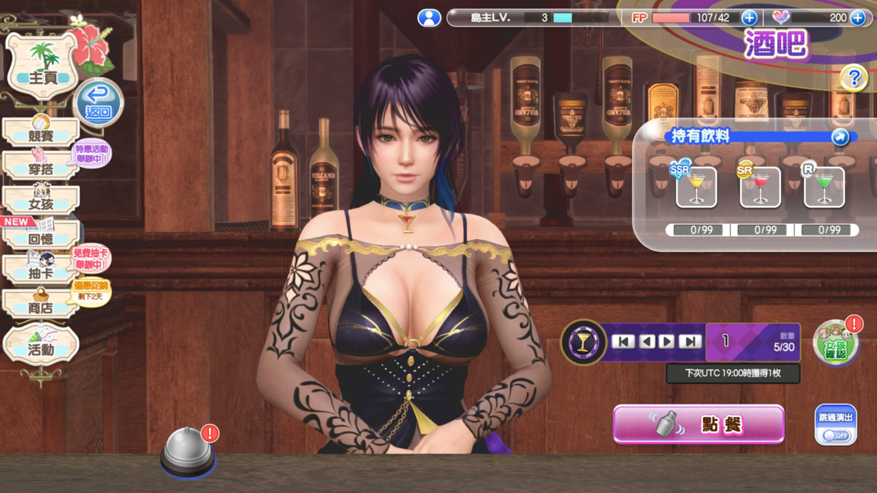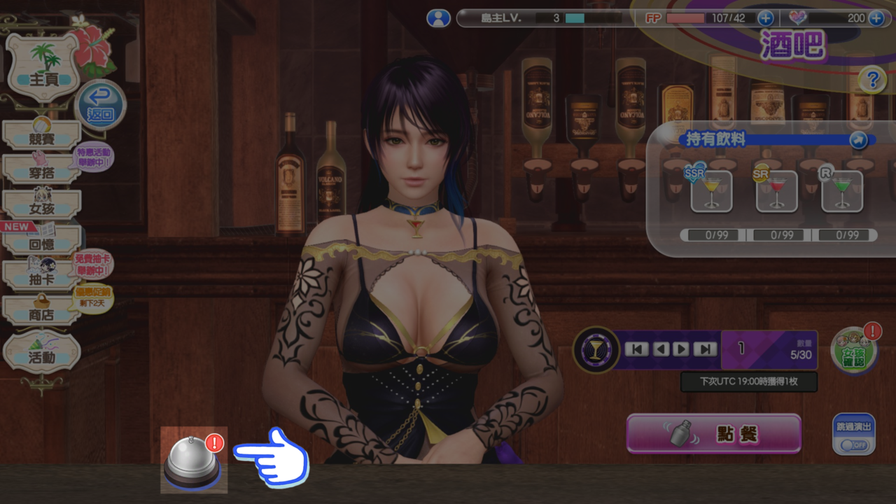 在酒吧畫面按下「點餐」按鈕後,將「飲料硬幣」交給香蒂,請她調製「維納斯飲料」!