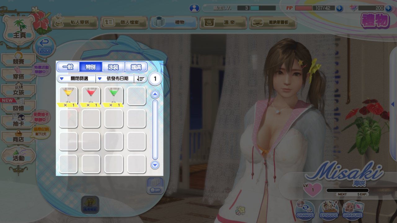 在「禮物畫面」的「特別」分頁將「維納斯飲料」贈送給女孩,就可獲得受贈女孩的「維納斯記憶」!