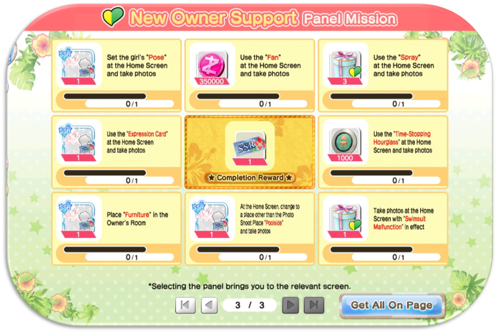 The Third Panel of "New Owner Support Panel Missions" features Photo Shoot-related Panel Missions that all Owners can try out!Clear all Panel Missions to obtain SSR Ticket!