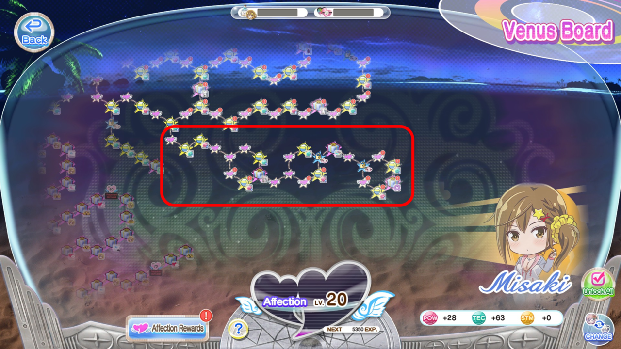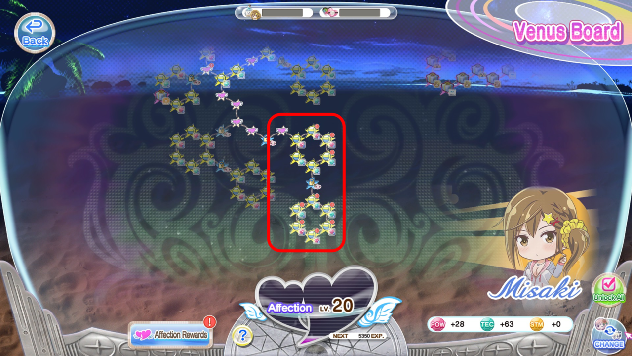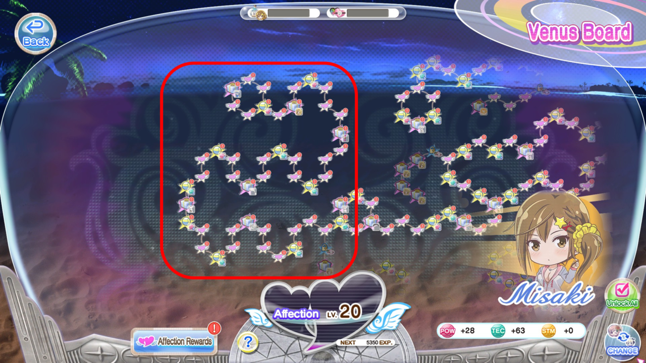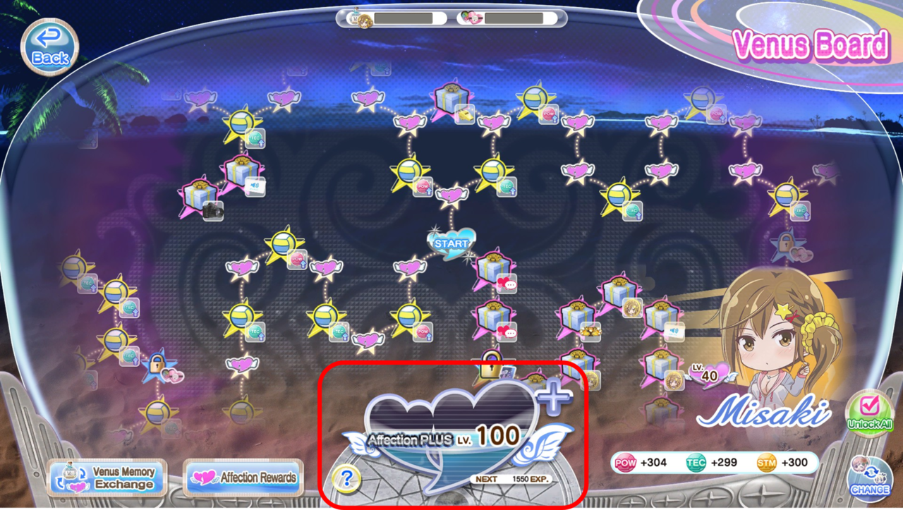 ※ After exceeding the “Affection PLUS” Level's max limit, you will no longer be able to perform “Venus Memory Exchange.” Also, please note that “Affection EXP” can no longer be acquired when unlocking panels.