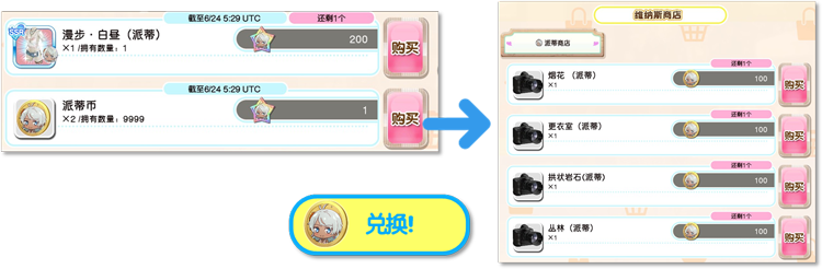 | ※ | 2021/06/24(周四)的系统维护后便无法使用“派蒂之星”换取“漫步·白昼(派蒂)”。 |